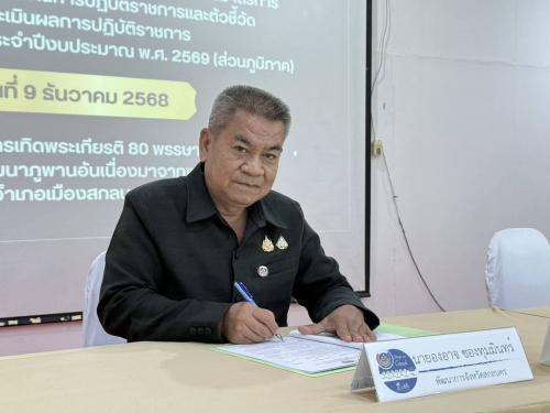 นายองอาจ ซองทุมมินทร์ พัฒนาการจังหวัดสกลนคร เป็นประธานเปิดการประชุม พร้อมลงนามคำรับรองการปฏิบัติราชการ และบันทึกข้อตกลงตัวชี้วัดและค่าเป้าหมายการประเมินผลการปฏิบัติราชการ ประจำปีงบประมาณ พ.ศ. 2569 โดยได้มอบแนวทางขับเคลื่อนงานตามมาตรการปรับปรุงประสิทธิภาพราชการ และชี้แจงรายละเอียดตัวชี้วัดและค่าเป้าหมายให้แก่ผู้บริหาร นักวิชาการพัฒนาชุมชน และเจ้าหน้าที่ที่เข้าร่วมประชุมอย่างครบถ้วน