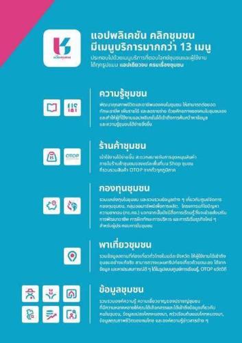 นอกจากนี้ ยังได้ประชาสัมพันธ์การใช้งาน แอปพลิเคชัน “Click ชุมชน” ซึ่งเป็นแพลตฟอร์มที่พัฒนาขึ้นเพื่อให้ประชาชนและเจ้าหน้าที่สามารถเข้าถึงบริการด้านการพัฒนาชุมชนได้อย่างสะดวก โดยมีเมนูบริการมากกว่า 13 เมนู เช่น