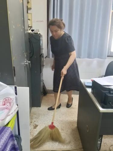 ระดมกำลังเจ้าหน้าที่ร่วมกันทำความสะอาดพื้นที่ส่วนกลาง โต๊ะทำงาน และจัดเก็บเอกสารให้เป็นระเบียบตามหลัก "สะดวก" และ "สะสาง"