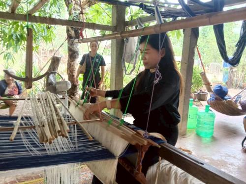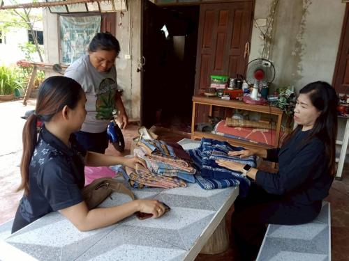 พช.โพนนาแก้ว จ.สกลนคร : ติดตามกลุ่ม OTOP กลุ่มทอผ้าครามมุกบ้านนาจานใหม่หมู่ที่ 9